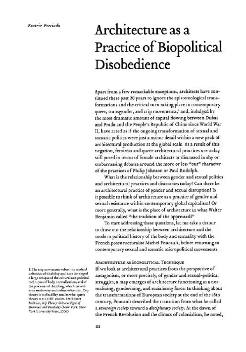 6. Artikel: Paul B. Preciado - Architecture as a Practice of Biopolitical Disobedience